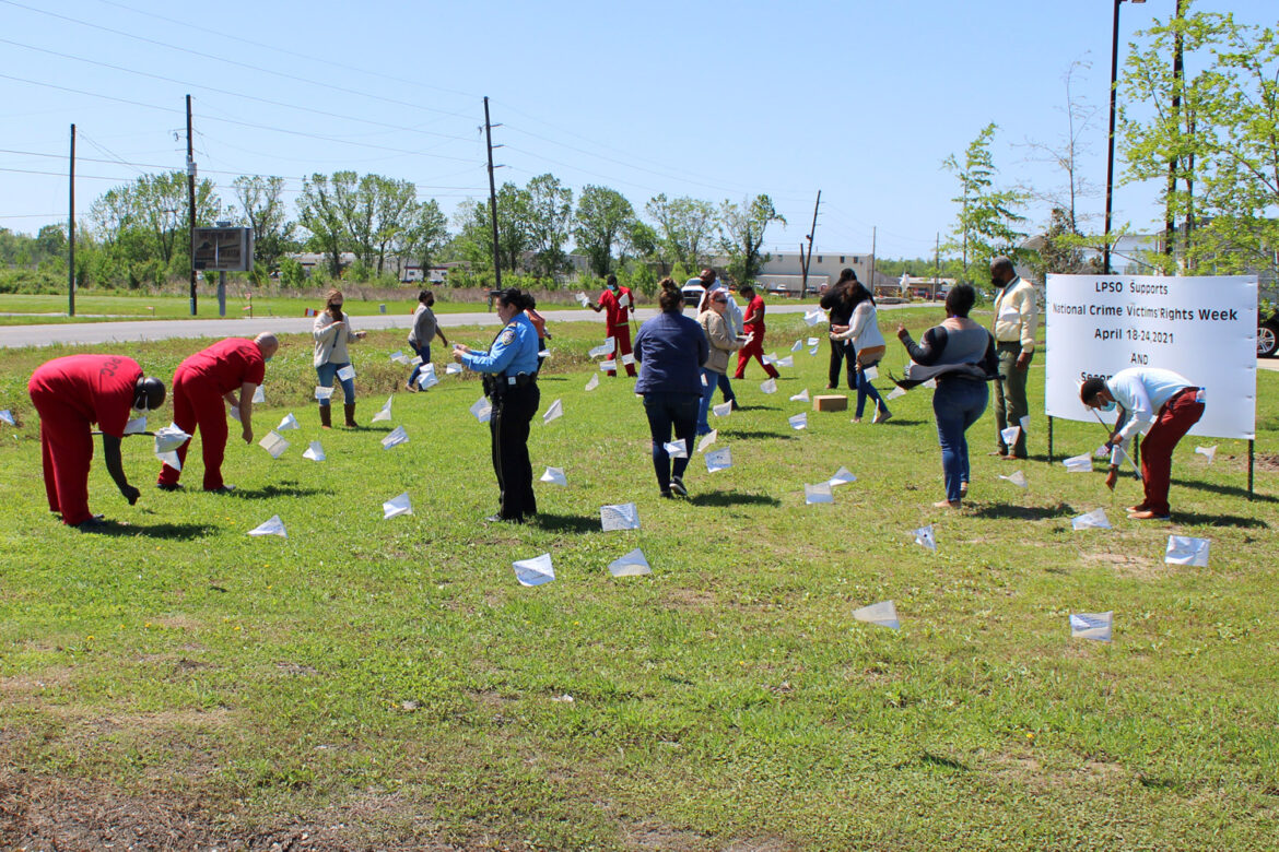 As an internationally recognized sign of peace and surrender, a white flag was personalized and signed by each participating inmate as a symbol of atonement for their past and to proclaim their desire for a new life. Some wrote heartfelt messages on the flags to acknowledge the effects of their past actions on others. Members of the Southeast Central Regional Reentry Program team were joined by Sheriff Webre, Major Cortrell Davis (Warden), LPSO Police Social Services staff, and representatives from the Louisiana Department of Corrections to assist participants in planting the flags. Their participation signified the staff’s willingness to do whatever it takes to help the inmates achieve their second chance.