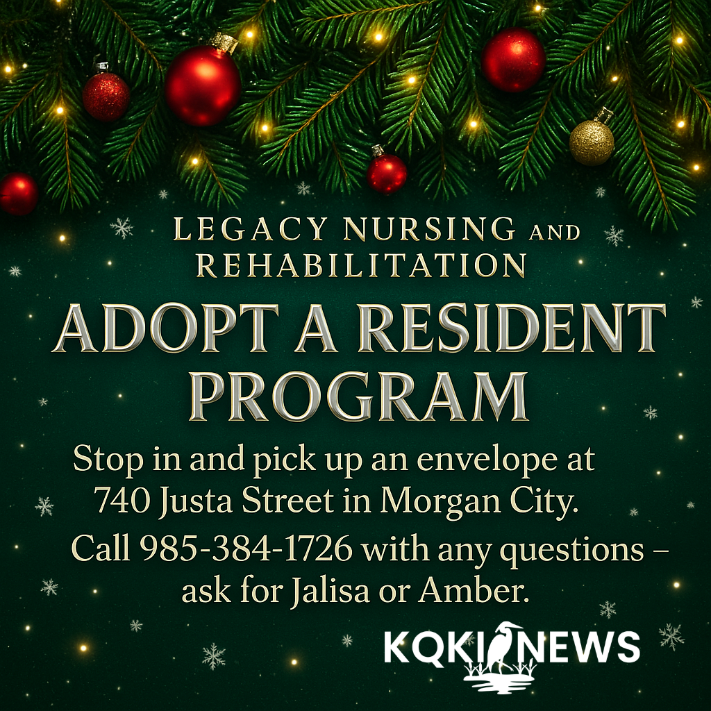 Each year, the program pairs generous community members with residents who may not otherwise receive gifts during the holidays. Participants can stop by Legacy Nursing and Rehabilitation, located at 740 Justa Street in Morgan City, to pick up an envelope containing details about a resident they can “adopt.” The envelope includes suggested gift ideas tailored to each resident’s needs and preferences.