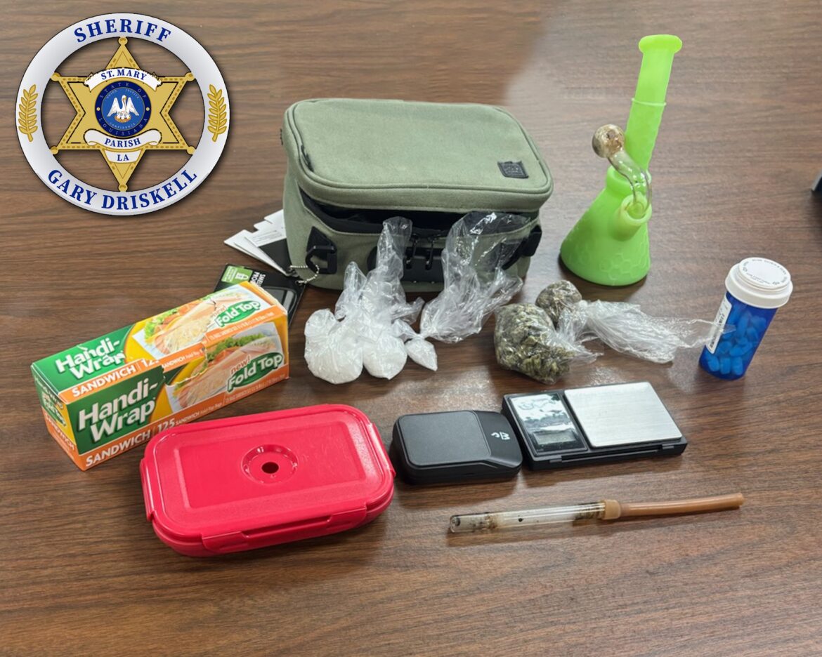 Through the investigation, drugs and drug paraphernalia were located inside the vehicle and seized. A scale and plastic bags were also discovered and seized.