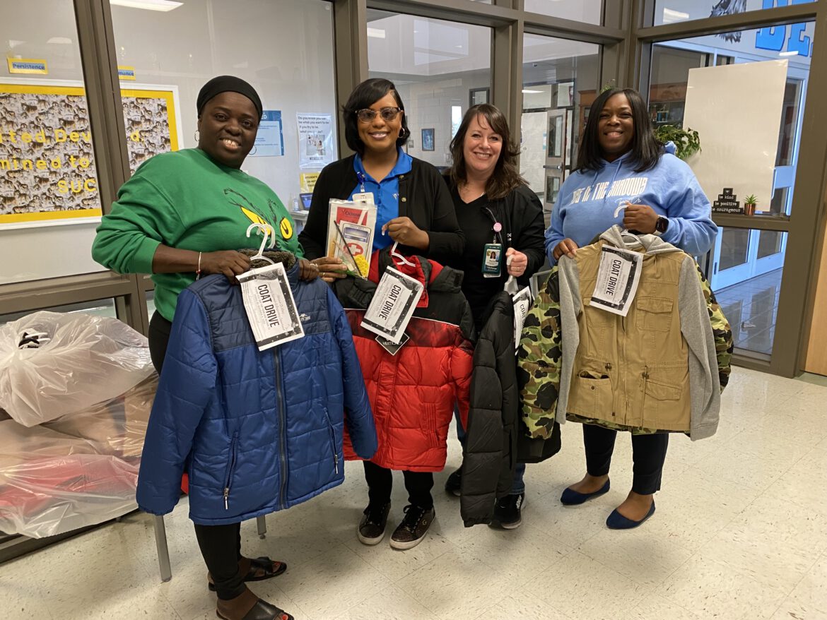 Recently, Ochsner St. Mary donated coats, socks, gloves, and blankets to students at St. Mary Parish schools across the district. This was made possible through a partnership with Ochsner St. Mary and the Respiratory department. Pictured are Dwan Naverre, Ochsner St. Mary Community Outreach Program Coordinator, and Rachel Torres, Ochsner St. Mary Respiratory Therapist, presenting items to several of the recipient schools.