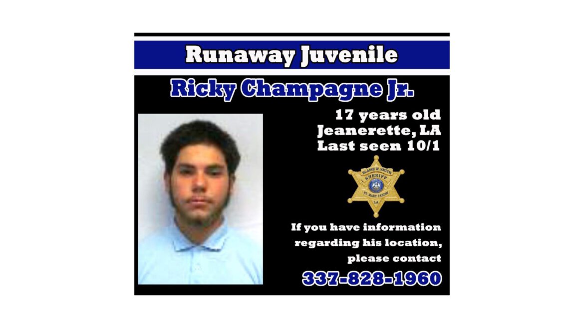 The St. Mary Parish Sheriff’s Office is seeking information on a runaway juvenile. 17-year-old Ricky Champagne of Jeanerette was last seen on Saturday, October 1, 2023.